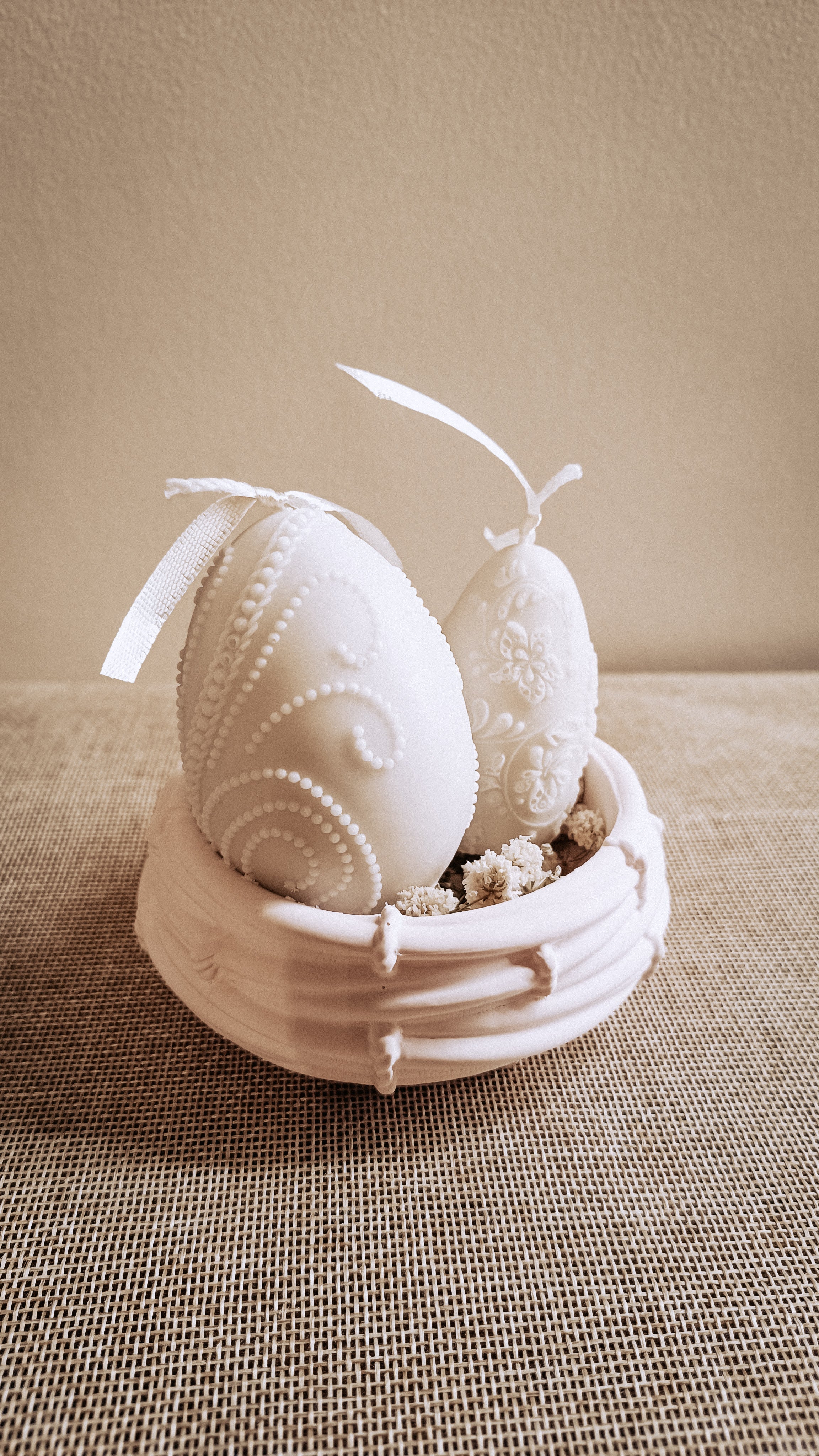 Easter gift set featuring one medium eco resin nest and a small Easter egg candle.